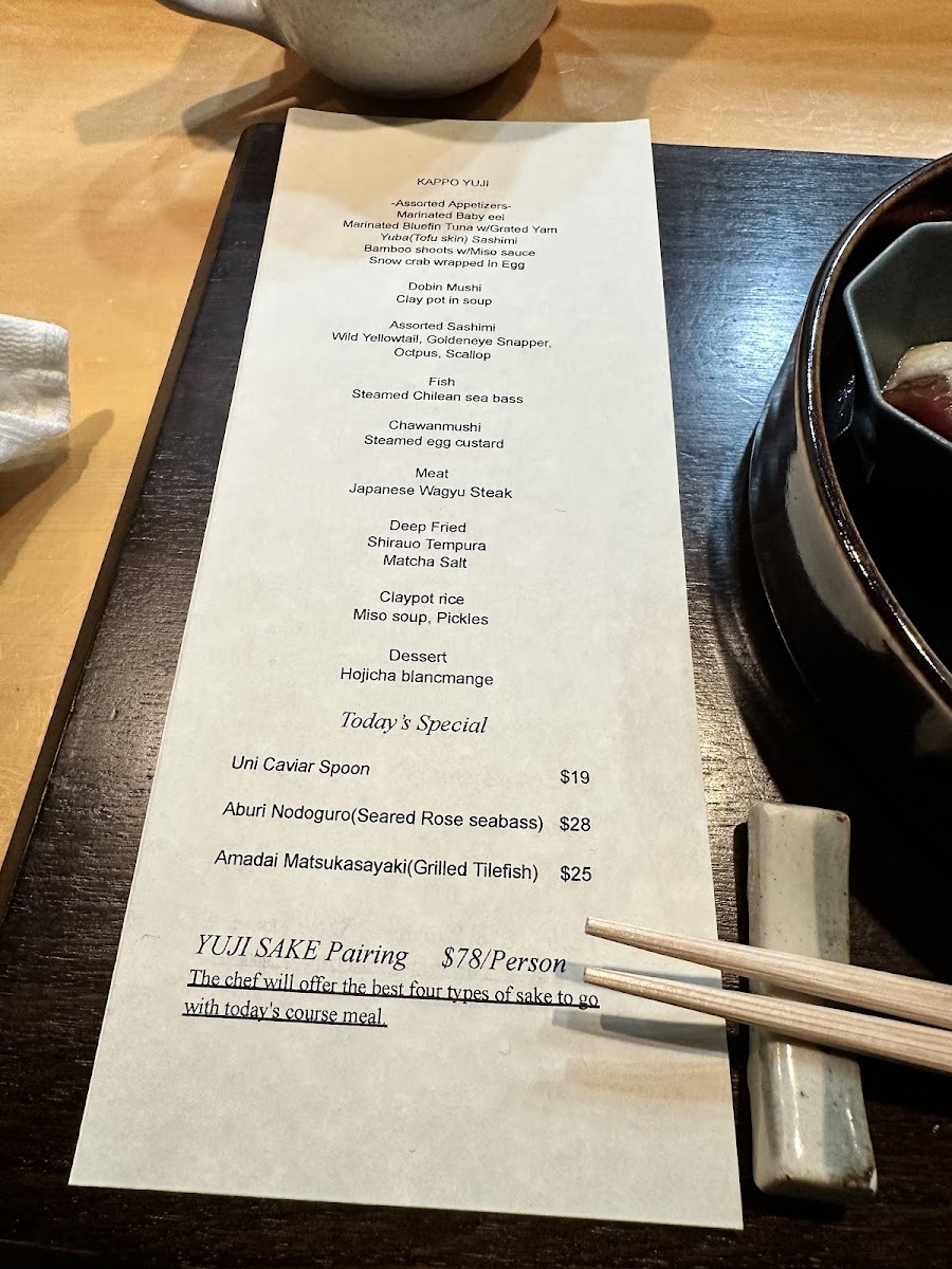 YUJI - San Francisco Menu